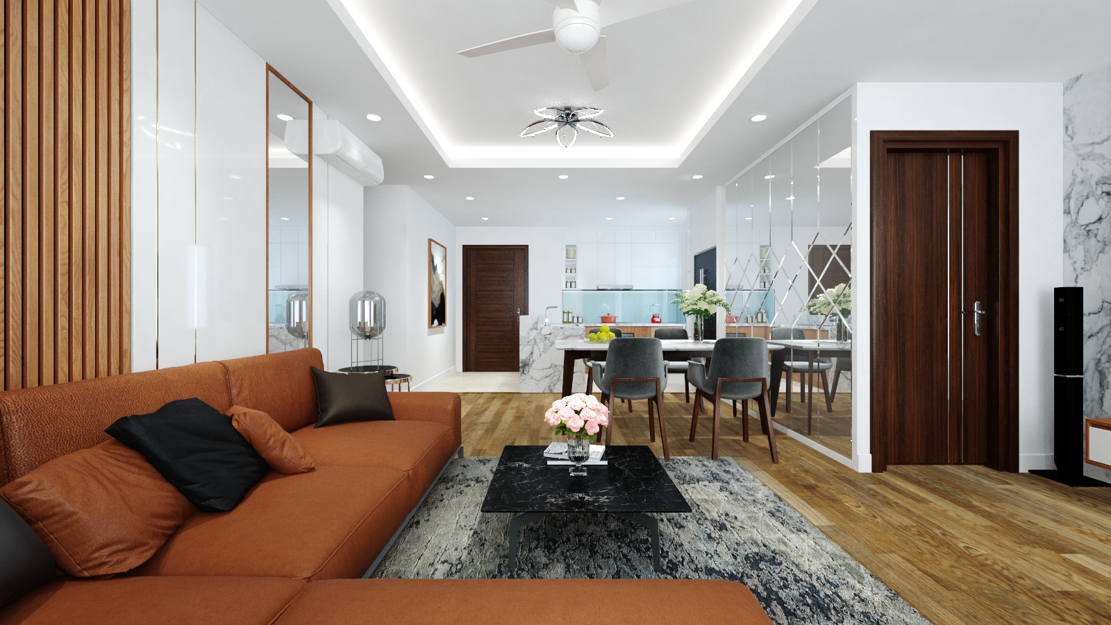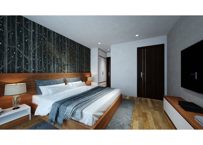 Chất liệu gỗ được sử dụng trong căn hộ được nhập từ nhà phân phối An Cường. Tùy vào các vị trí khác nhau sẽ được sử dụng các vật liệu thích hợp:
